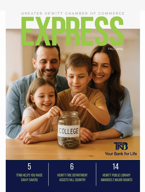 From our award-winning annual Community Guide & Business Directory to our quarterly Hewitt Express magazine, there are plenty of opportunities throughout the year to highlight your business in the greater Hewitt/Woodway market. Questions? Contact Misti@hewittchamber.com.